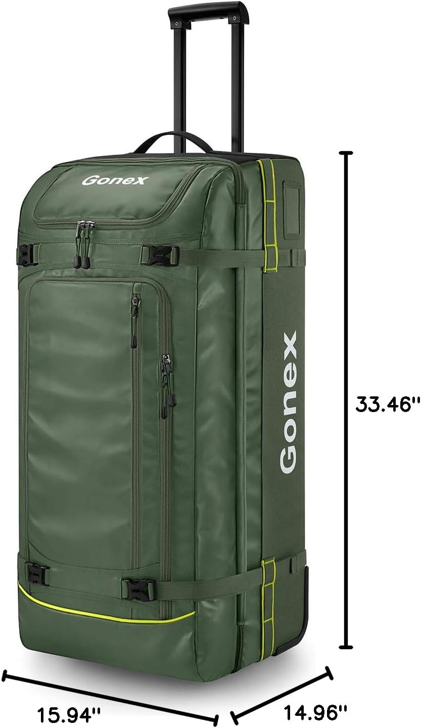 Gonex Rolling Duffle Bag with Wheels, 100L Water Repellent Large Wheeled Travel Duffel Luggage with Rollers 33 inch, Black